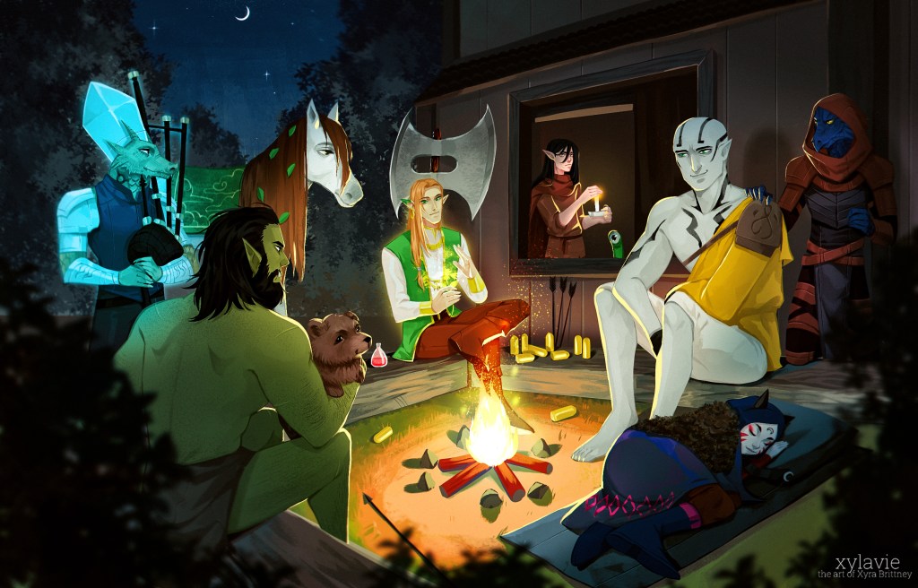 Meanwhile, Kiana (councilor of Magic) proposed an idea to Ko’viel about taking over as leader of magic at the end of her term in approximately 2 years. She explains that she is a Wizard but also made a pact with Illiam and is both a Wizard and Warlock. Her magic got people killed in Canala, where she was exiled to the gnome city of Skimberi and ended up saving the world from Balore El Efa Nemro, at the cost of her child becoming cursed with the Gorgon/Medusa powers. Kiana had a deep and meaningful with Ko’viel, a conversation about letting go and Ko’viel being afraid of feeling empathy towards Thormar. To signify this, Ko’viel obtained a boon of energy mastery on fire with elements crackling under his burnt half-scar.