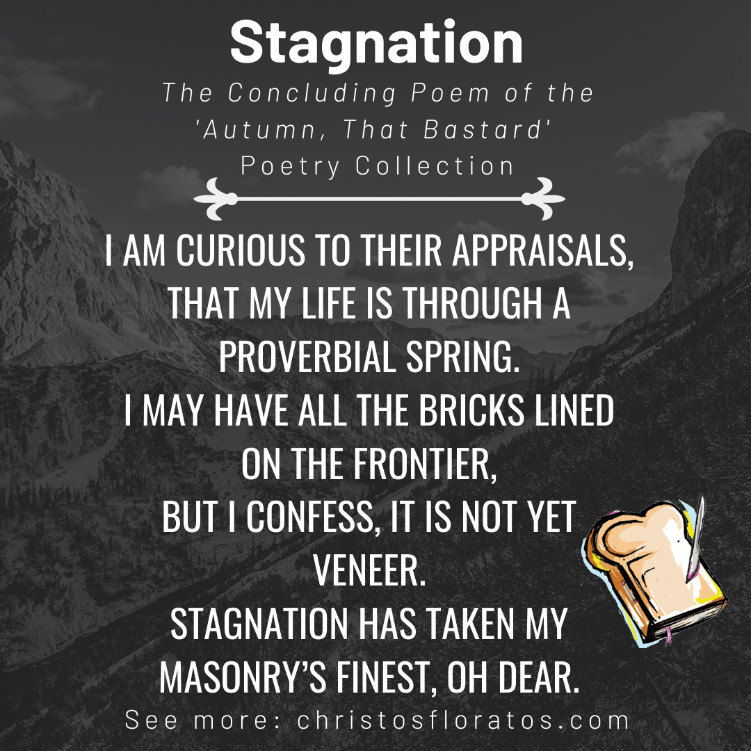 The concluding poem of the ‘Autumn, That Bastard’ Poetry Collection. ‘Stagnation’ captures the disillusion associated with prolonged waiting and summarises the entire collection